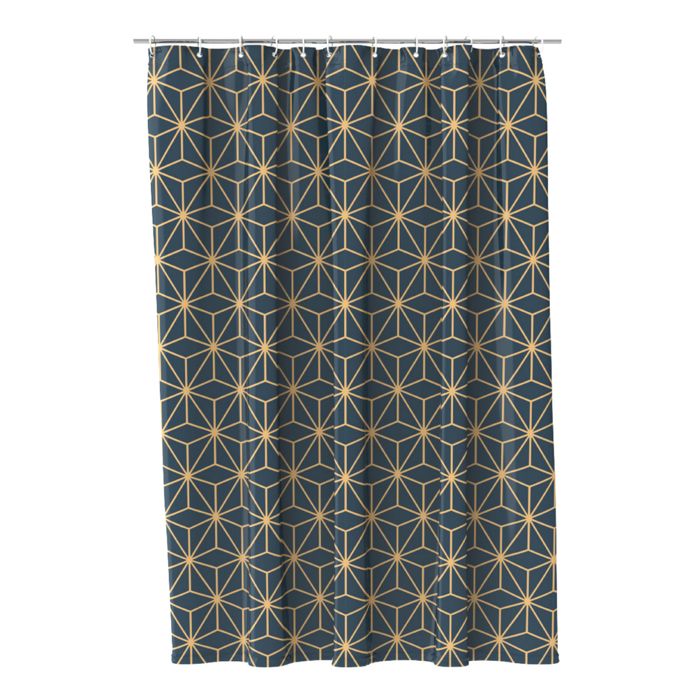 Штора для ванной Fora насыщенного цвета с золотистым геометричным принтом — яркое решение для санузла в современном стиле. Покрытая водоупорной пропиткой с двух сторон, она не задерживает на себе воду и известковые пятна, сохраняя эстетику и чистоту.