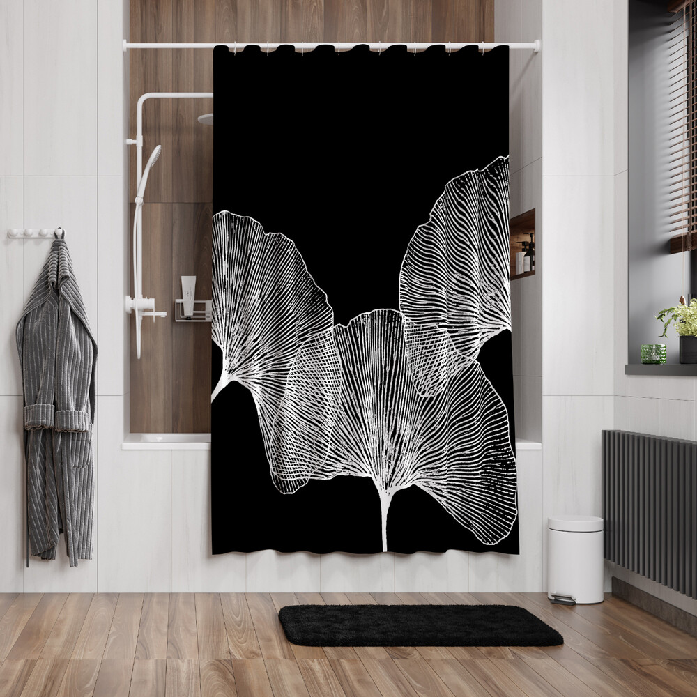 Комплектация: Шторка для ванной, пластиковые кольца — 12 шт.