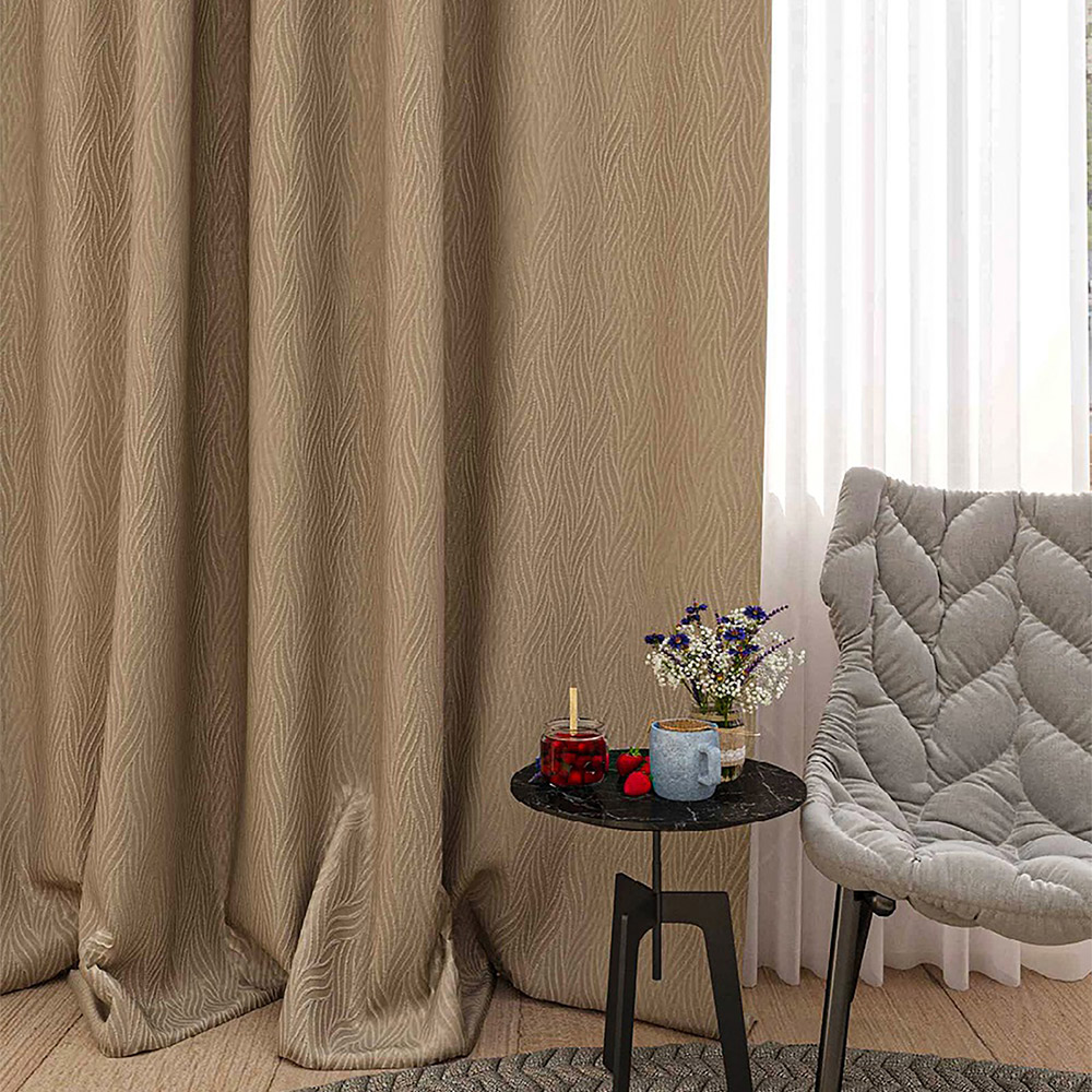 Мягкая приятная на ощупь ткань — матовый димаут. За счет слоя из черной нити внутри, достигается наибольший эффект светопоглощения. Шторы подходят для спальни, гостиной, детской комнаты.