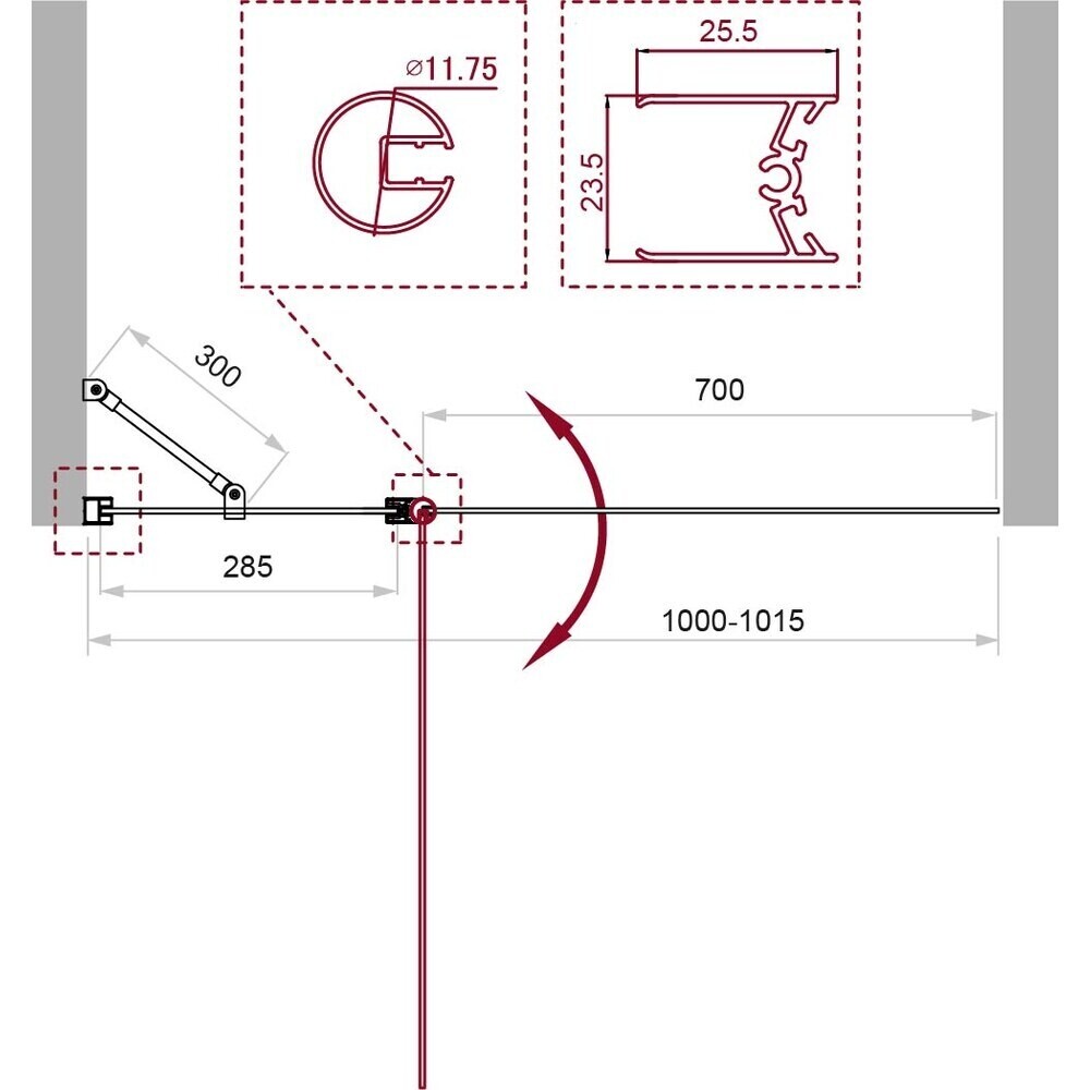 Шторка на ванну распашная 100х150х0,5 см профиль черный BelBagno Uno (UNO-V-11-100/150-C-NERO)