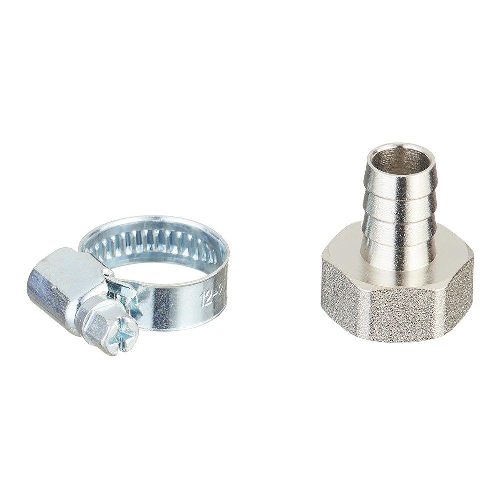 Комплект для подключения садового шланга 1/2″ состоит из штуцера и обжимного хомута.