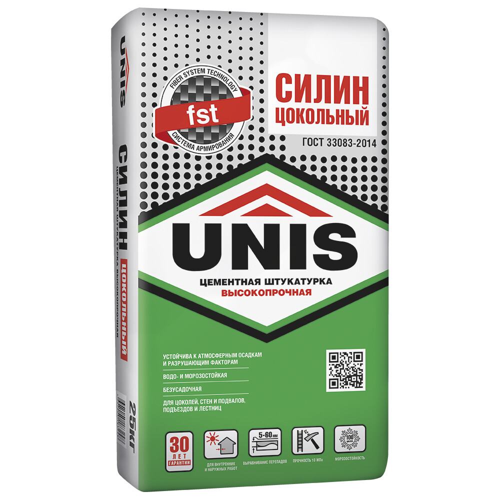 Штукатурка цементная Unis Силин Цокольный цокольная армированная 25 кг