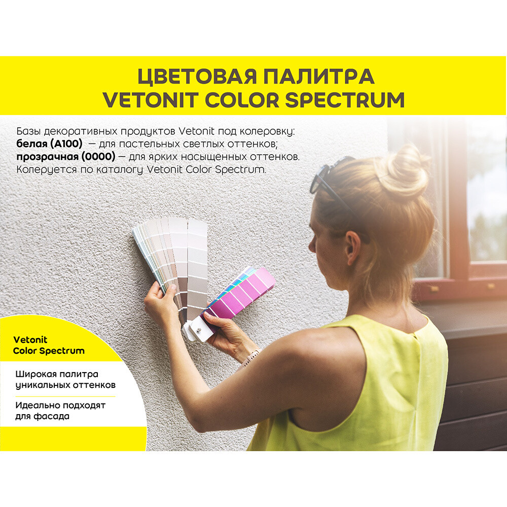 Готовая к применению силикатно-силиконовая полимерная декоративная штукатурка. Подходит для создания декоративно-защитного слоя на поверхности теплоизоляционных фасадных систем. Образует борозчатое покрытие «короед/барашек». Подходит для внутренних и наружных работ. Долговечная, обладает эффектом самоочищения, высокой стойкостью к образованию грибков и плесени. Легка в работе, подходит для механизированного нанесения. Не требует последующей окраски, так как колеруется в массе. Перед применением необходимо загрунтовать поверхность при помощи Vetonit prim uni.