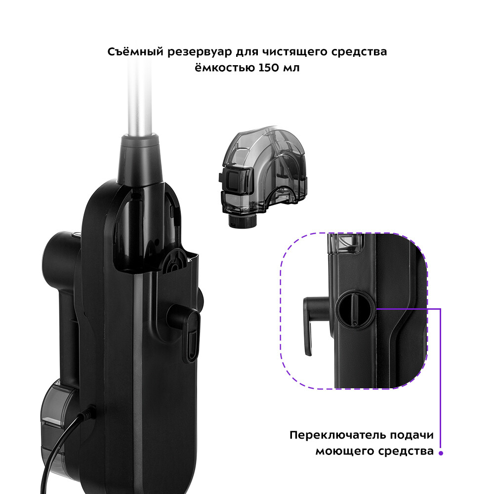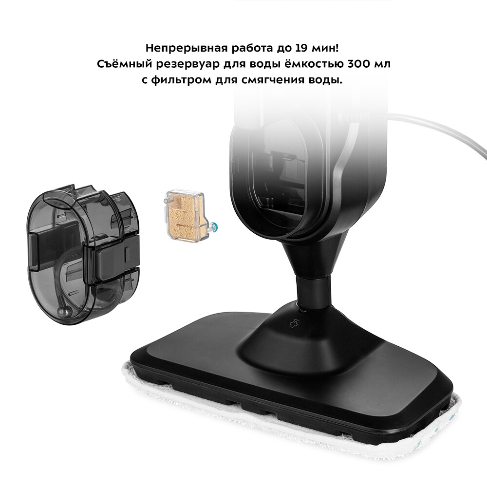 Паровая швабра с функцией вертикальной парковки «2 в 1» Kitfort КТ-1018 – универсальное и современное устройство, которое поможет избавиться от пыли и грязи с помощью мощной струи пара, а также продезинфицирует обрабатываемую поверхность. Швабра оснащена съемным резервуаром для воды объемом 300 мл, что позволяет производить непрерывную уборку до 19 мин. Предусмотрен фильтр для смягчения воды, устанавливаемый в емкость для воды. Он поможет в предотвращении образования накипи в бойлере. С помощью паровой швабры КТ-1018 можно проводить чистку пола и с моющим средством. Для этого устройство оснащено отдельным резервуаром емкостью 150 мл. На корпусе имеется специальный переключатель для подачи средства во время отпаривания. Три уровня подачи пара позволят настраивать интенсивность выходящего пара. Это очень удобно при очистке разных типов по…