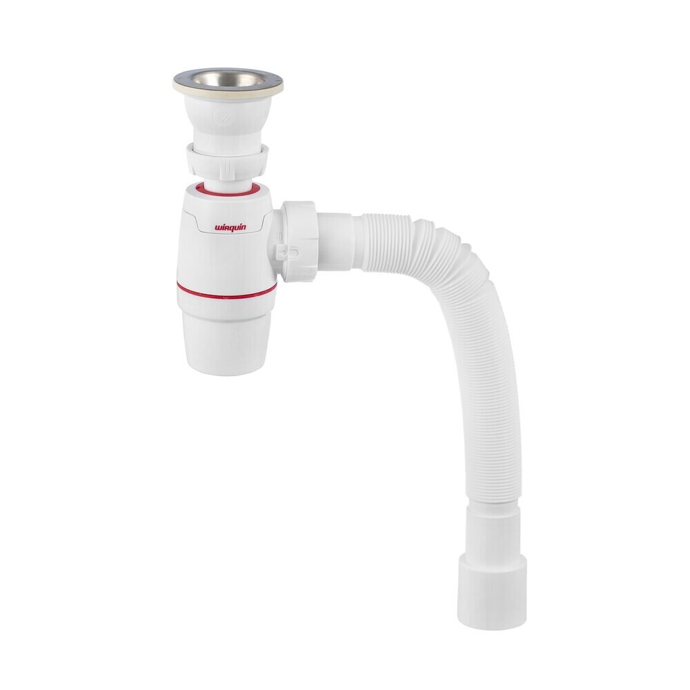 Сифон Wirquin Neo — инновационный сифон бутылочного типа для мойки, укомплектован выпуском из нержавеющей стали и гофротрубой (L800 мм).