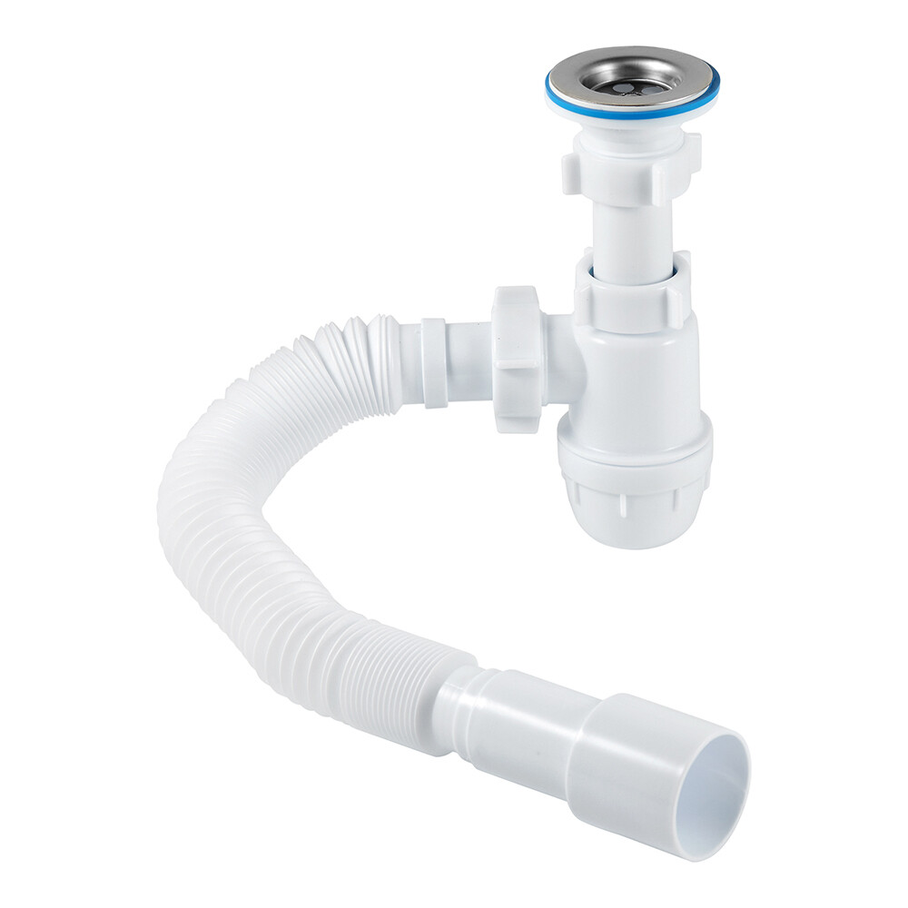 Сифон для раковины АНИ пласт 1 1/4х32 мм с выпуском 40/50 мм с соединением 40/50 мм белый (BM1016)
