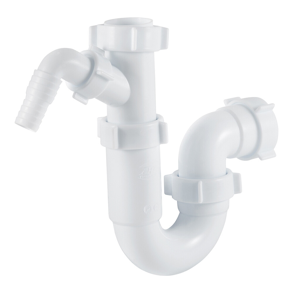 Сифон для раковины и мойки АНИ пласт 1 1/2х40 мм без выпуска с отводом 40 мм с соединением 40 мм (D1020)