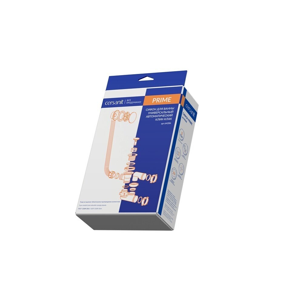 Сифон для ванны Cersanit Prime 1 1/2х40 мм проточный слив d68 мм автомат с выпуском клик-клак с соединением 40 мм (64286)
