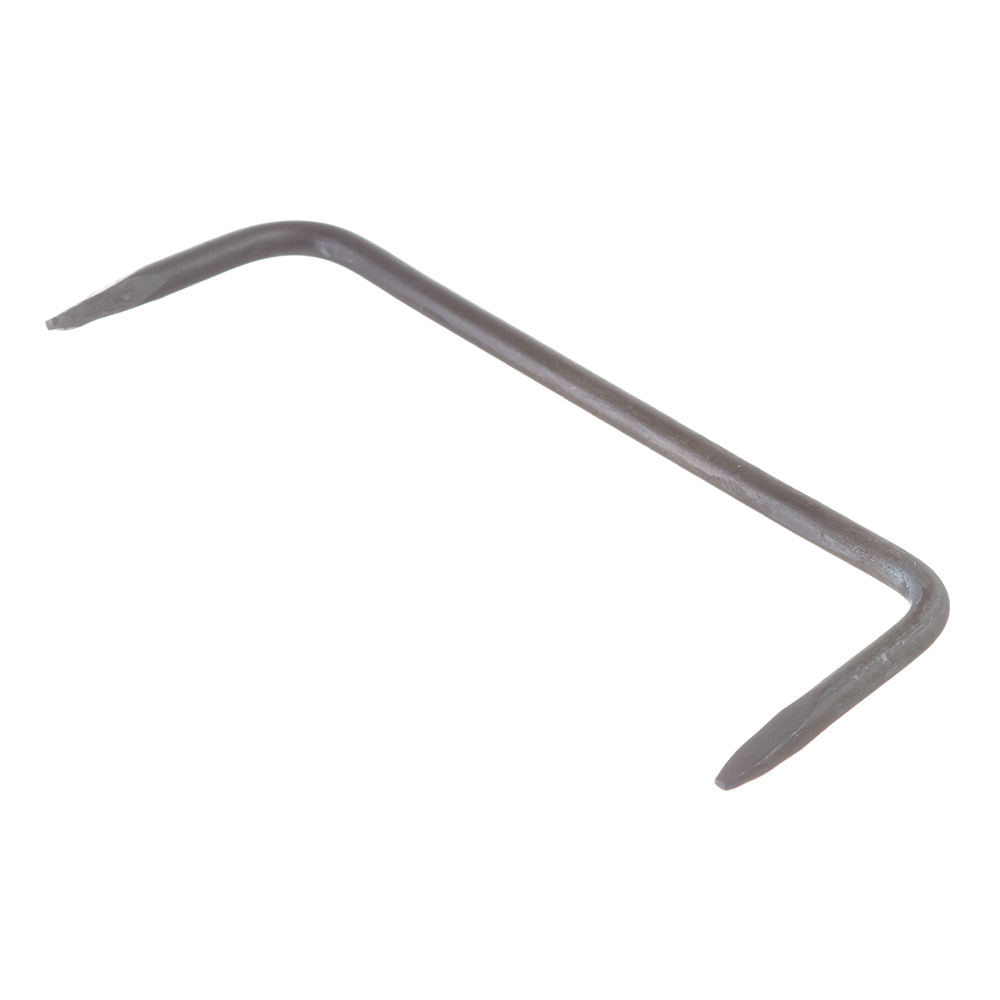 Скоба представляет собой металлическое изделие, по форме напоминающее букву «П». Скоба состоит из «ножек» и «спинки». Концы «ножек» выполнены в виде острых четырехугольных конусов. Скобы изготавливают из гладкого круглого стального прутка методом горячей ковки.