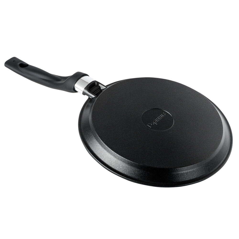 Блинная сковорода с антипригарным покрытием — литая алюминиевая посуда, которая подходит для газовых, электрических и стеклокерамических плит. При минимальном использовании масла получаются тонкие блины и пышные оладьи.