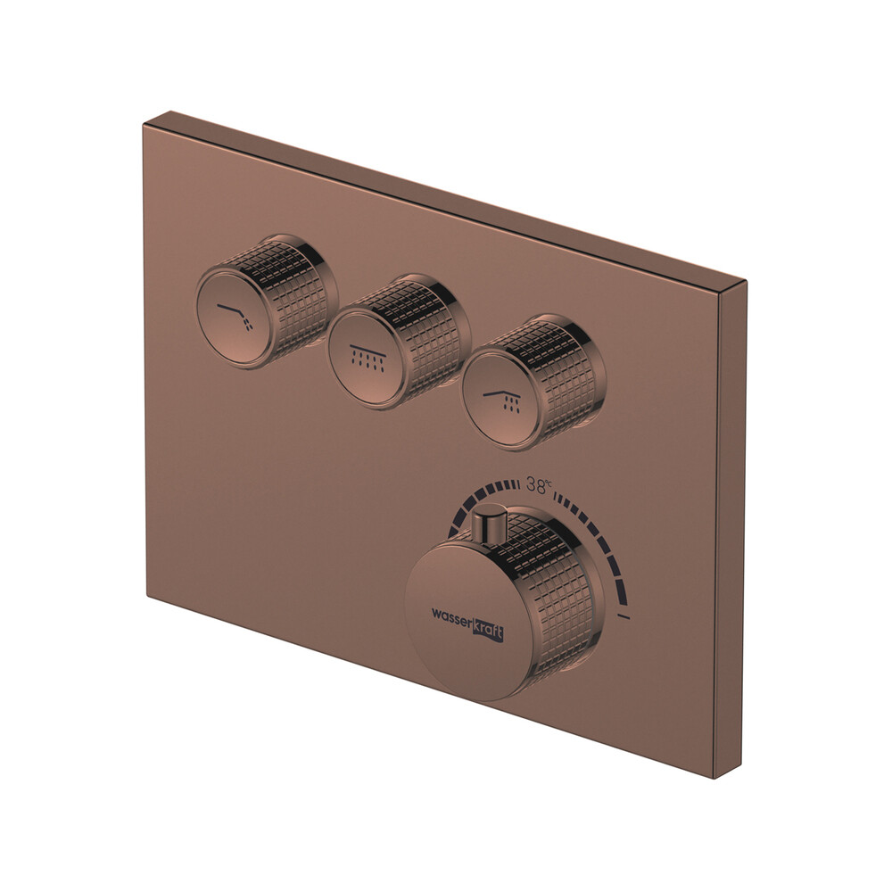 Главная / Каталог / Сантехника / Смесители и душевое оборудование / Смесители скрытого монтажа / Смесители для ванны и душа встраиваемые / Смеситель для душа встраиваемый WasserKraft Asphe термостатический с переключателем без лейки розовое золото (7758 Thermo)