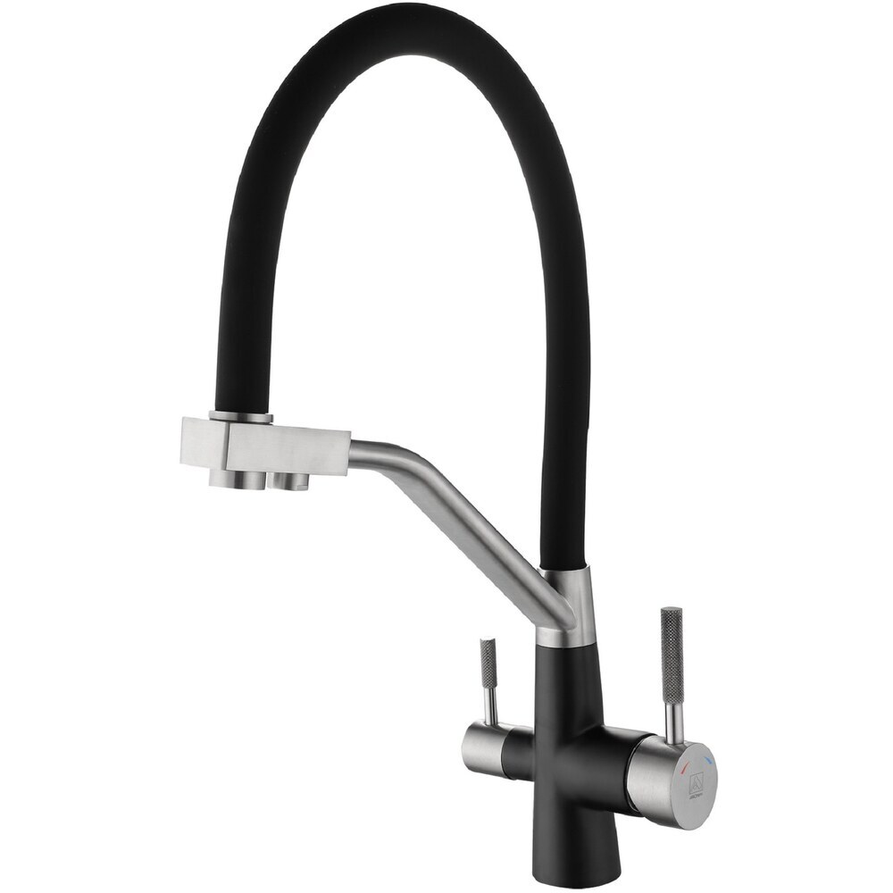Смеситель для кухни ARGOtech Solid черный с гибким изливом с подключением к фильтру однорычажный (35-11 SOLID black)