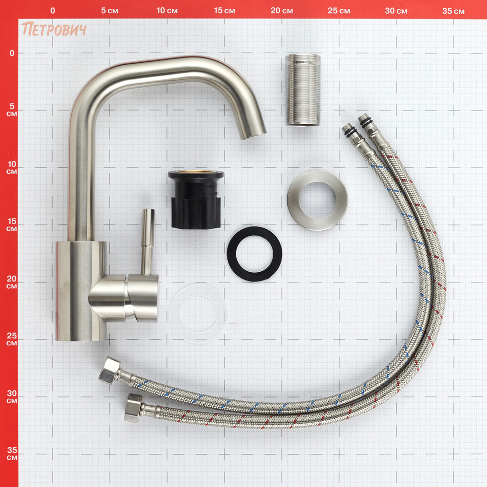 Смеситель для кухни и раковины Corsa Deco TS нержавеющая сталь с поворотным изливом однорычажный (FKTS)