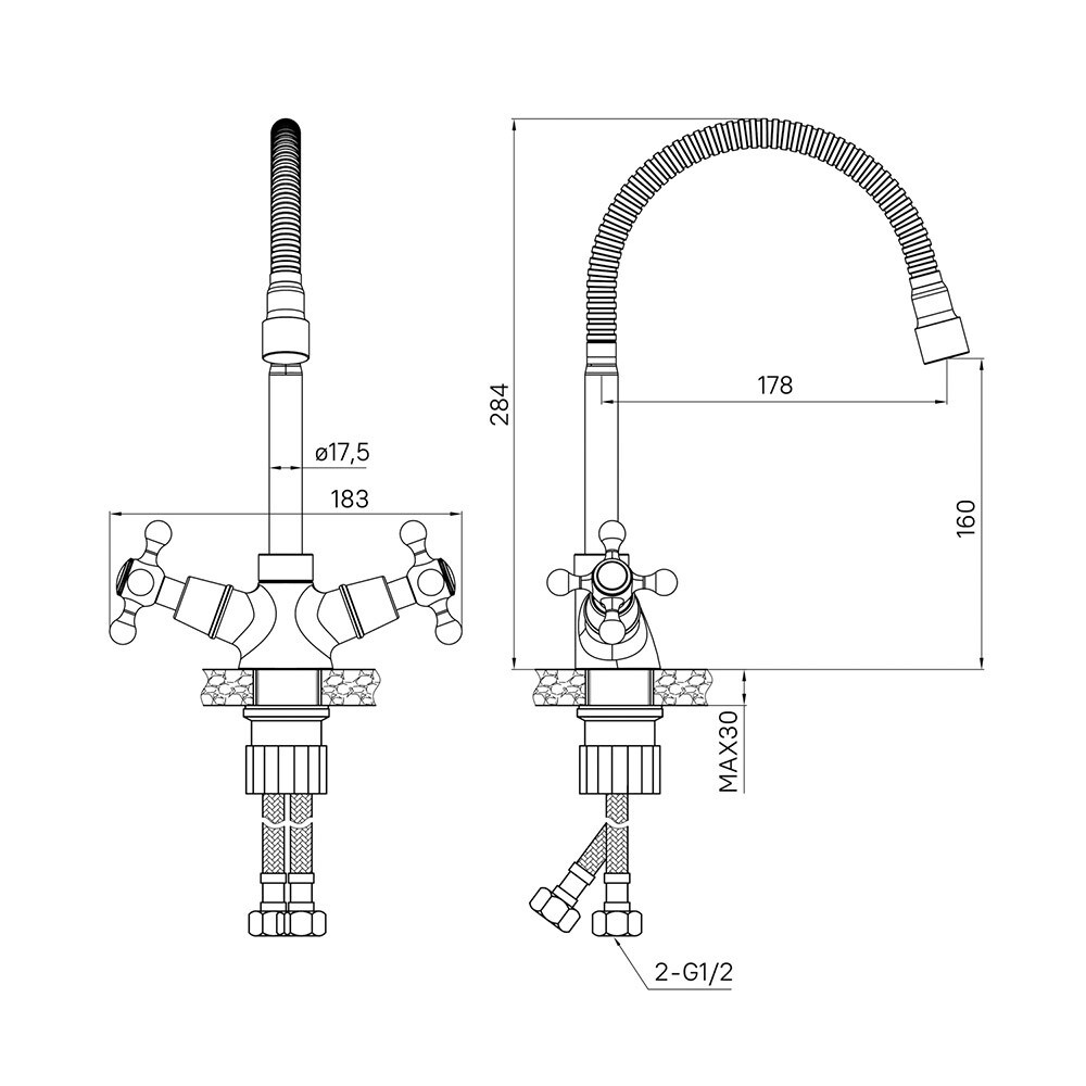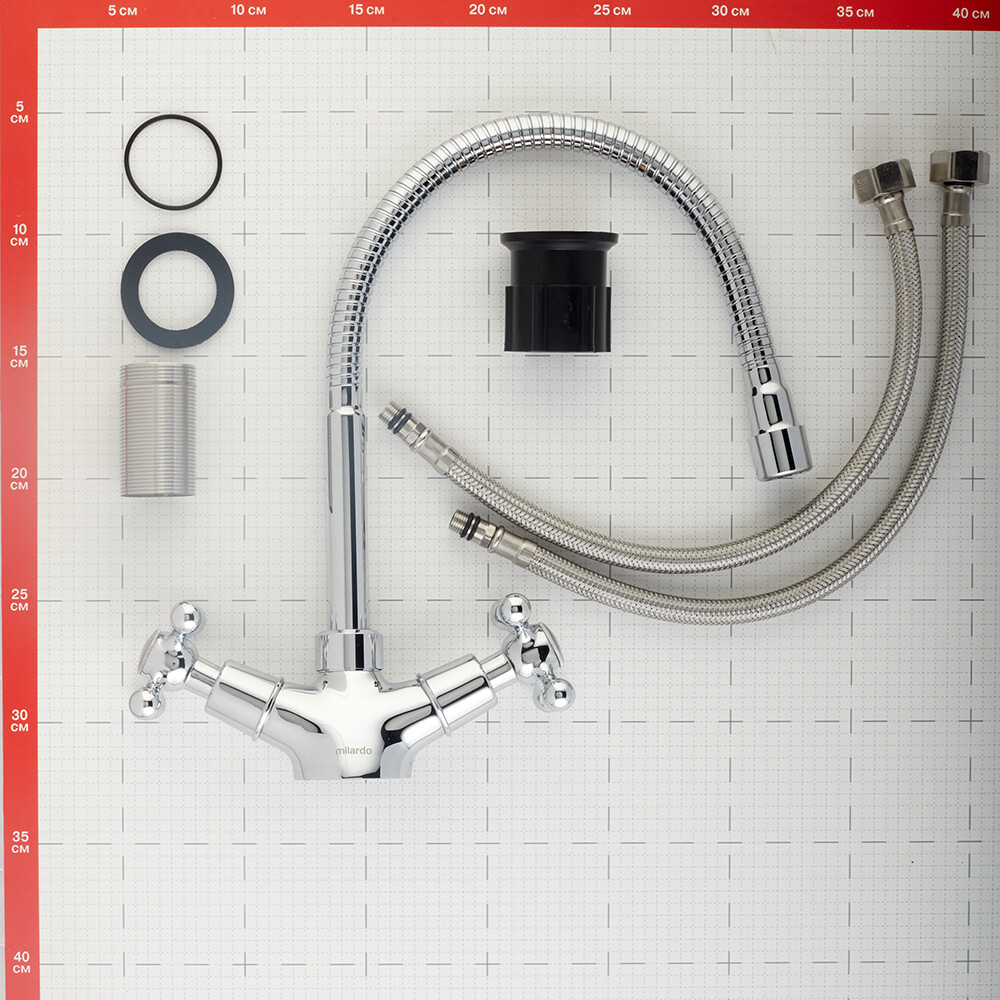 Смеситель для кухни Milardo Duplex хром с гибким изливом двухвентильный (DUPSB0FM05)