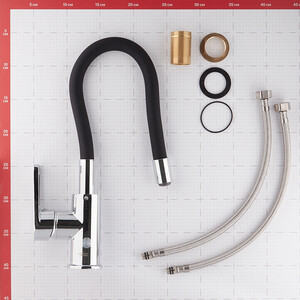 корпус смесителя с установленными картриджем, рукояткой, аэратором – 1 шт., гибкая подводка 35 мм 1/2 » – 2 шт.