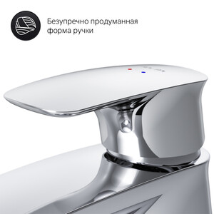 Эргономичность – безупречно продуманная форма ручки идеально ложится в ладонь. Наклон и плавный изгиб корпуса смесителя обеспечивают удобство использования на высокой раковине.
