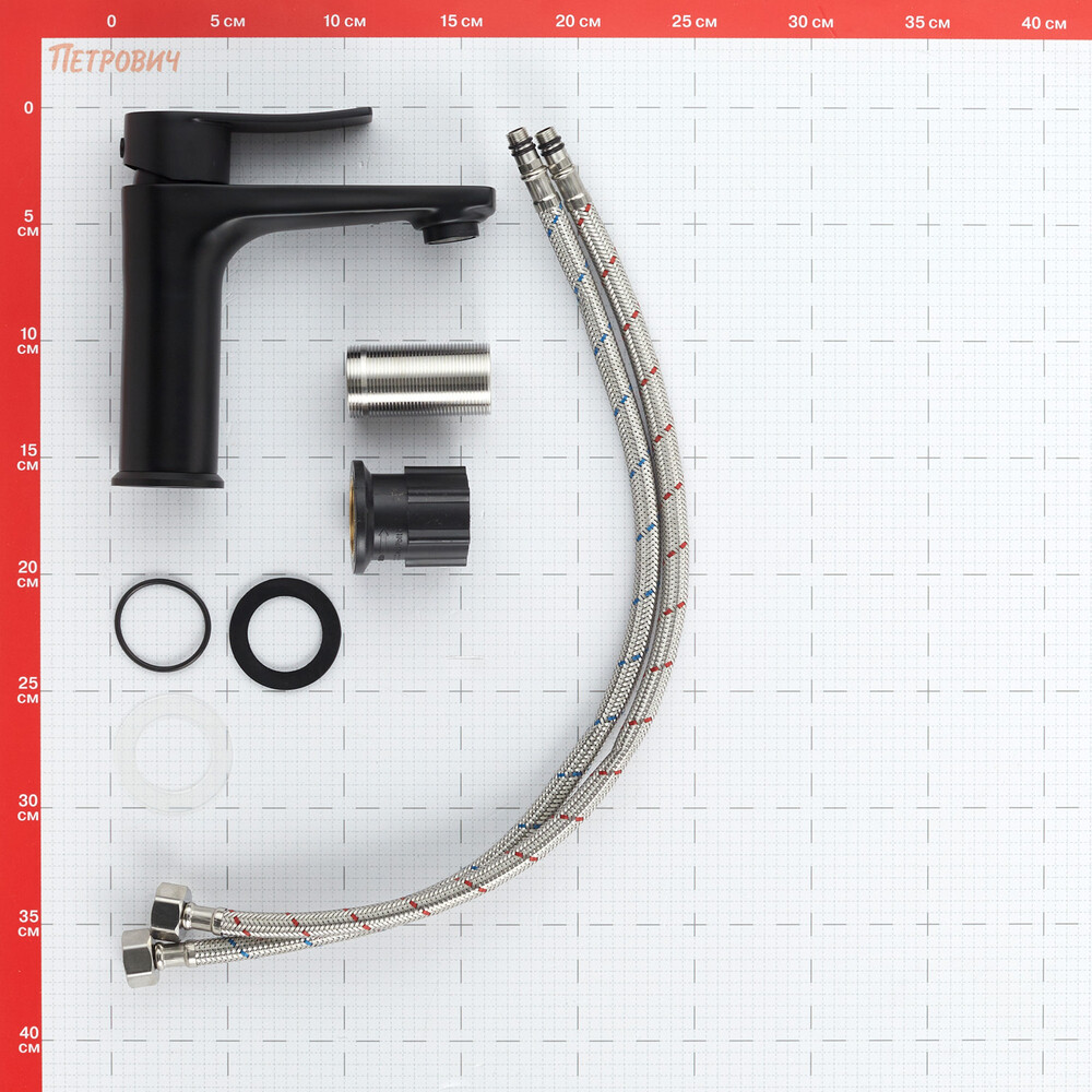 Смеситель, гибкая подводка, монтажный набор, инструкция по эксплуатации с гарантийным талоном.