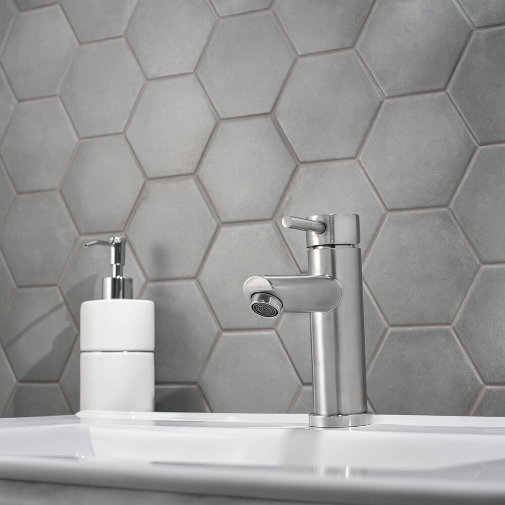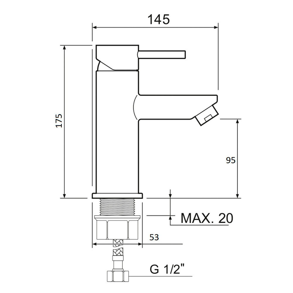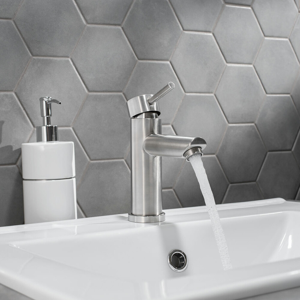 Смеситель для умывальника из нержавеющей стали с керамическим картриджем 35 мм. Крепление – гайка.