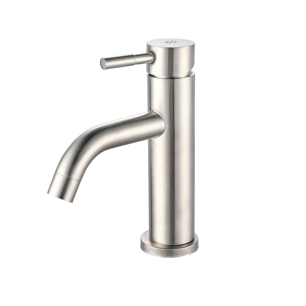 Смеситель для умывальника из нержавеющей стали с керамическим картриджем 35 мм. Крепление — гайка.