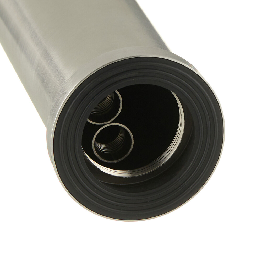 Смеситель для накладной раковины однорычажный из нержавеющей стали.