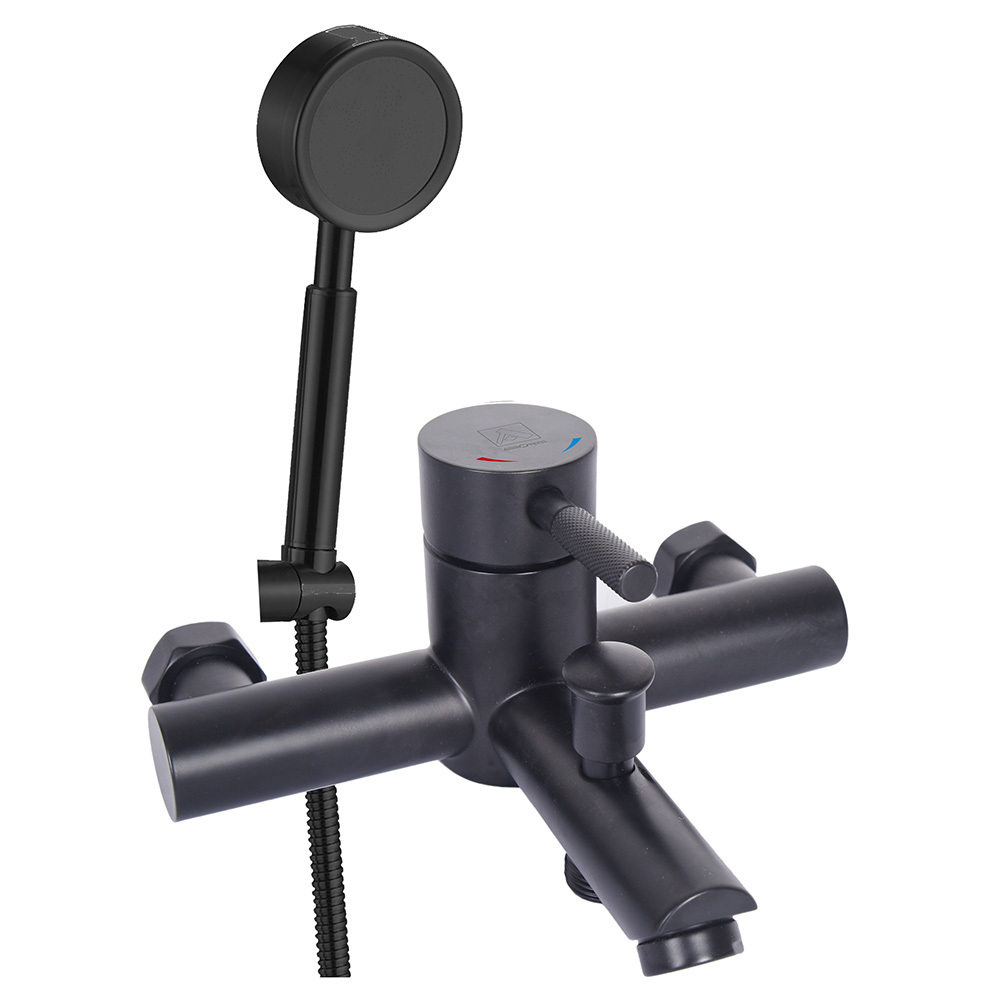 Смеситель для ванны ARGOtech Solid черный однорычажный с коротким изливом с лейкой (35-05 SOLID black)