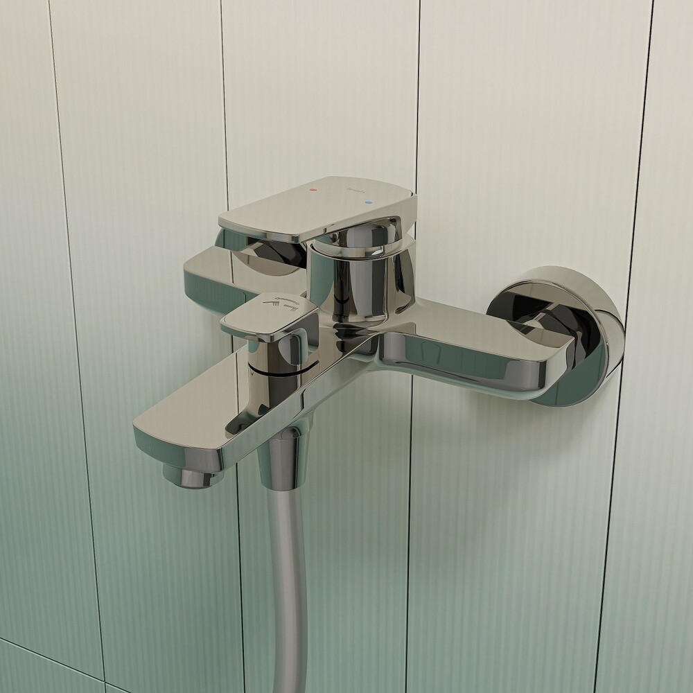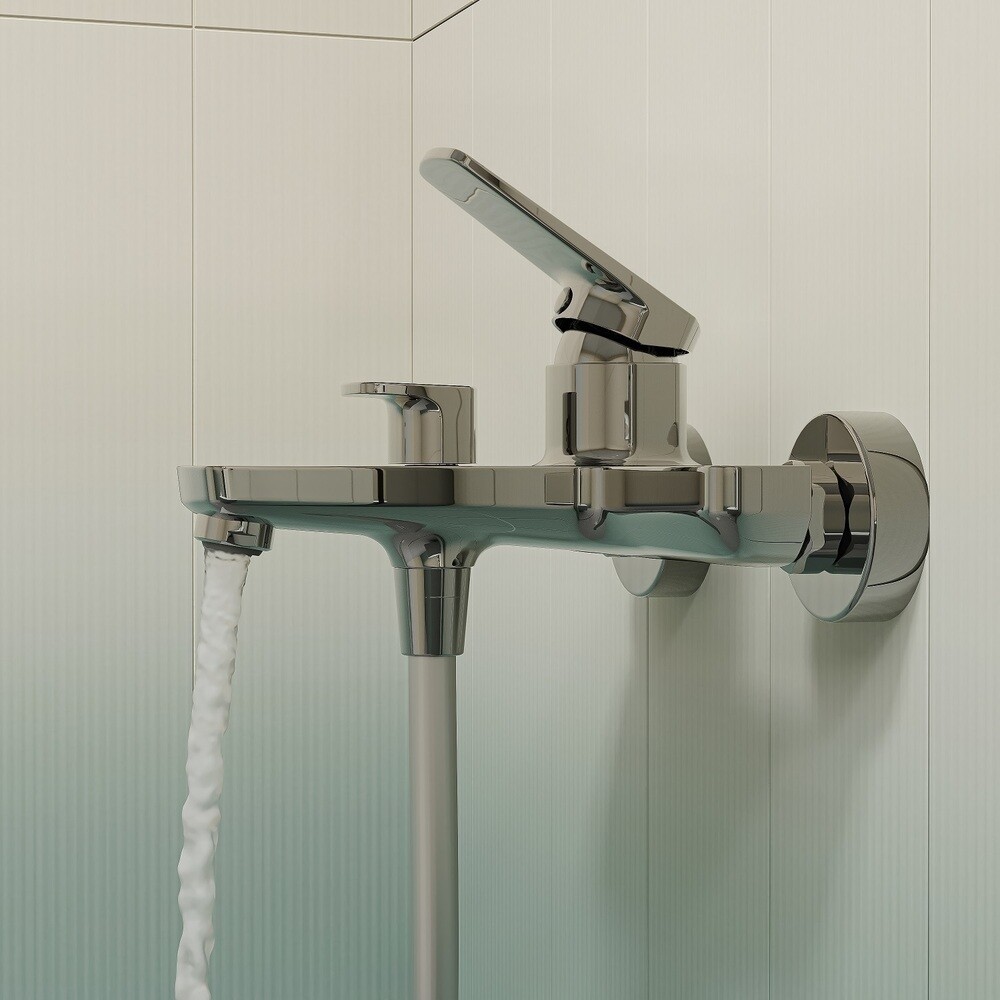 Смеситель для ванны выполнен из латуни в цвете хром. Керамический дивертор надежно и мягко переключает поток воды с излива на лейку даже при минимальном давлении воды в трубах. Плавный ход ручки и абсолютная точность регулировки температуры и напора воды обеспечиваются за счет качественного керамического картриджа. Смеситель прослужит долго благодаря надежному корпусу из прочной латуни, стойкому к коррозии, резким изменениям давления и перепадам температуры воды. Ровный и мягкий поток воды без брызг обеспечивается благодаря силиконовому аэратору. Легко чистится от известкового налета простым движением пальца.