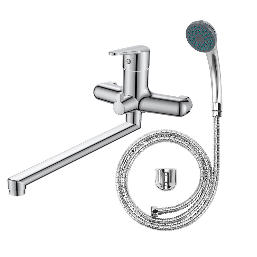 Смеситель для ванны с длинным изливом с аксессуарами изготовлен из ECO полимерного сплава.