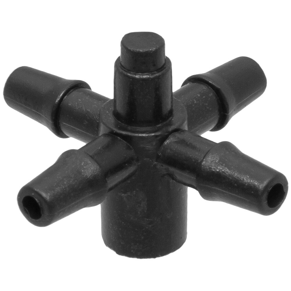 Разветвитель крестовой используется для монтажа и разветвления капельной микротрубки. Применяется на внешнюю капельницу с выходом 4 мм для микротрубок 5 мм на 4 выхода. Рекомендуемый внутренний диаметр микротрубки 3 мм. На концах микротрубок необходимо установить капельницы-стрелки или регулируемые капельницы, что обеспечивает подпор воды и равномерный вылив по всем 4 направлениям. Максимальный расход воды на один выход — 2 л/ч, минимальный расход воды на один выход — 0,5 л/ч (плоская поверхность, без неровностей), 1 л/ч (наклонная поверхность или поверхность с неровностями).