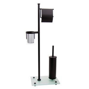 Стойка с бумагодержателем и ершом WasserKraft напольная стекло/металл черная