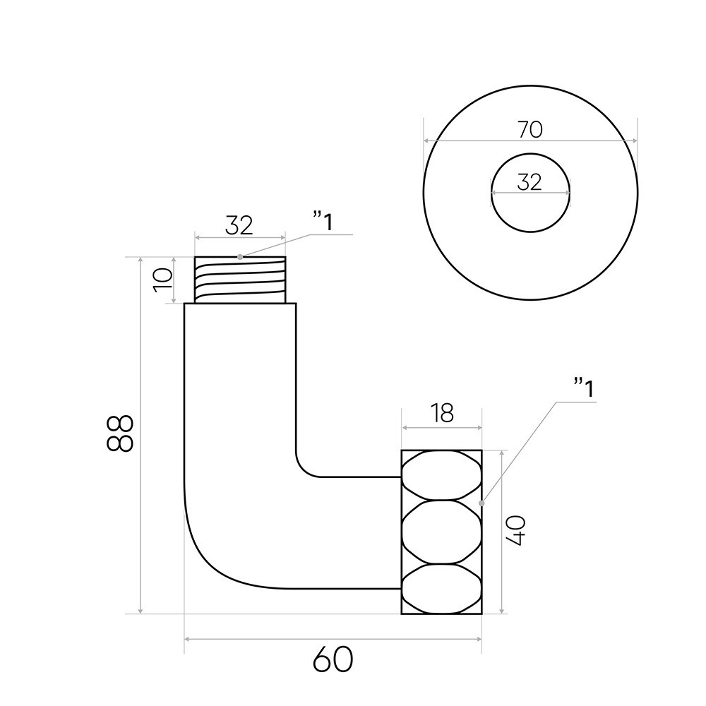 Угловое соединение для подключения полотенцесушителя. Изделие выполнено из латуни. Цвет «Черный Муар», изделие матовое благодаря специальной технологии окрашивания. Рабочая температура до 100°C, рабочее давление до 10 бар.