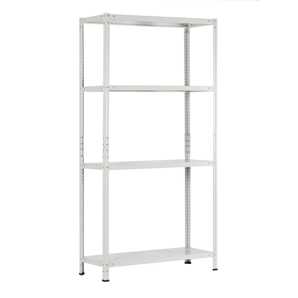 Комплектация: полка 400х1000 мм — 4 шт., стойка 1000 мм — 8 шт., уголок усиливающий — 16 шт., соединитель стоек — 4 шт., подпятник — 4 шт., болты — 96 шт. (М6х16), гайки — 96 шт. (М6).