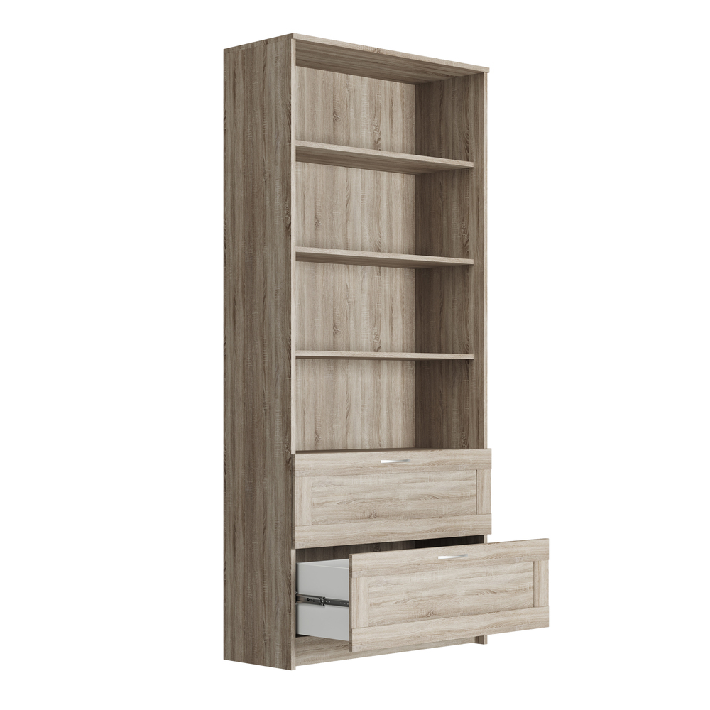 Стеллаж Сириус широкий 78х190 см с 2 ящиками и четырьмя полками. Выполнен в классическом стиле. Размер стеллажа 78х35х190 см. Подходит для использования в домашней и офисной обстановке. Выполнен из ЛДСП.