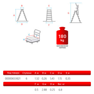 Стремянка алюминиевая 6 ступеней 80 мм двухсторонняя 1,32 м Новая высота