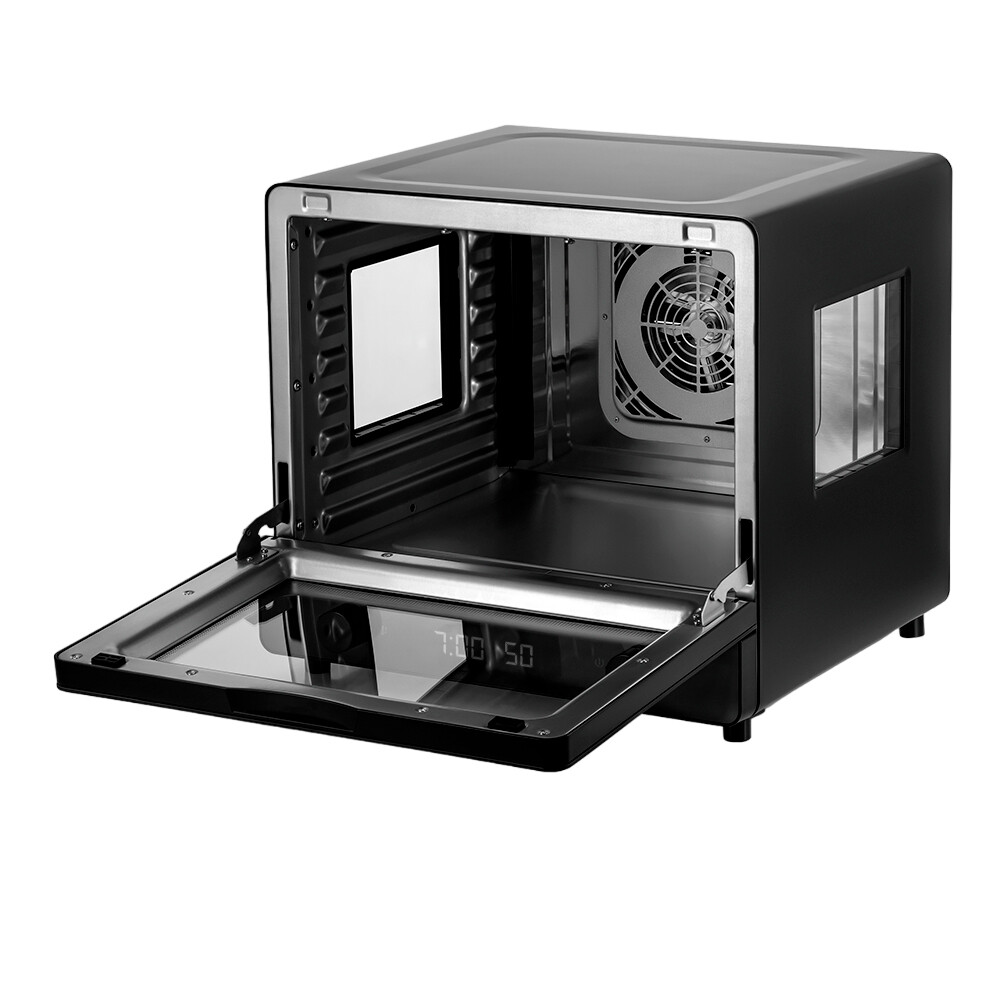 В сушилке установлен мощный нагревательный элемент и вентилятор с лопастями большого диаметра, обеспечивающий равномерное распределение нагретого воздуха по всему объему камеры. Благодаря горизонтальному обдуву смешение запахов при сушке одновременно разных продуктов минимально. На сушилке можно установить температуру сушки в диапазоне 35–70 оС с шагом 1 оС. Сушилка оснащена таймером до 48 часов работы с шагом 1 час, также можно установить время работы в минутах до 1 часа с шагом 1 минута.
