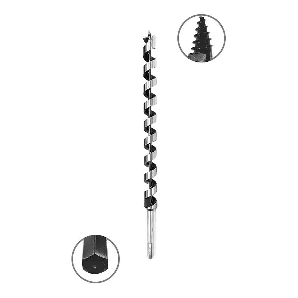 Предназначено для глубокого сверления в заготовках ДСП, мягких и твердых породах древесины. Материал сверла — инструментальная сталь повышенной прочности, которая подходит для изготовления сверл, сохраняя их режущие качества и высокий рабочий ресурс. С помощью шестигранного хвостовика 12,5 HEX сверло надежно закрепляется в патроне дрели. Специальная форма шнека и центрирующего острия обеспечивают быстрый заход в материал и выход без заклинивания.