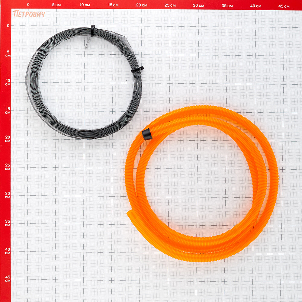 В комплект теплого пола входит нагревательная секция, монтажная лента для крепления нагревательного кабеля к полу, защитная гофротрубка для термодатчика, инструкция по эксплуатации с гарантийным талоном. Терморегулятор с датчиком продается отдельно.