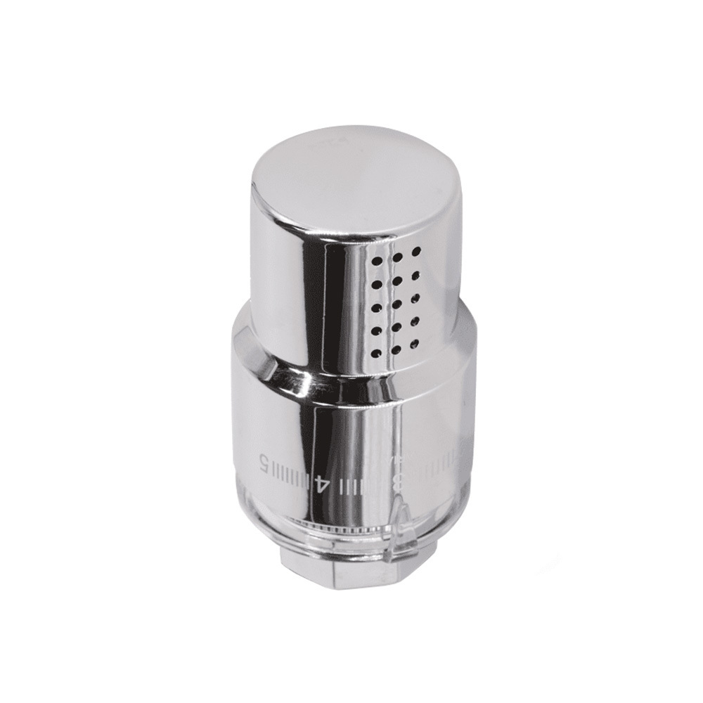 Термостатическая головка SR Rubinetterie Aria, c жидкостным датчиком. Диапазон регулировки температуры от +7 до +28°C. Режим защиты от замерзания — 7°C.