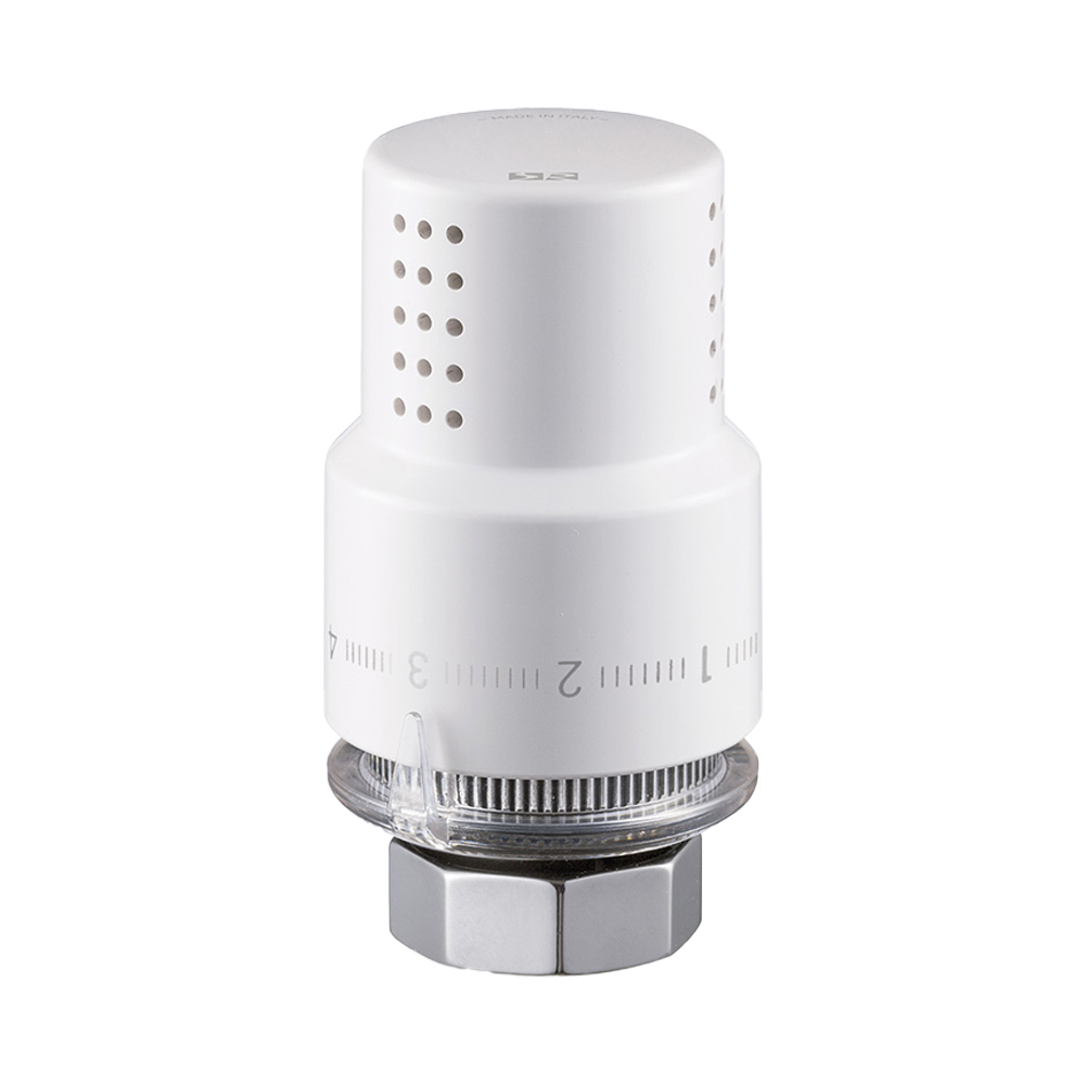 Термостатическая головка SR Rubinetterie Aria, c жидкостным датчиком. Диапазон регулировки температуры от +7 до +28°C. Режим защиты от замерзания — 7°C.