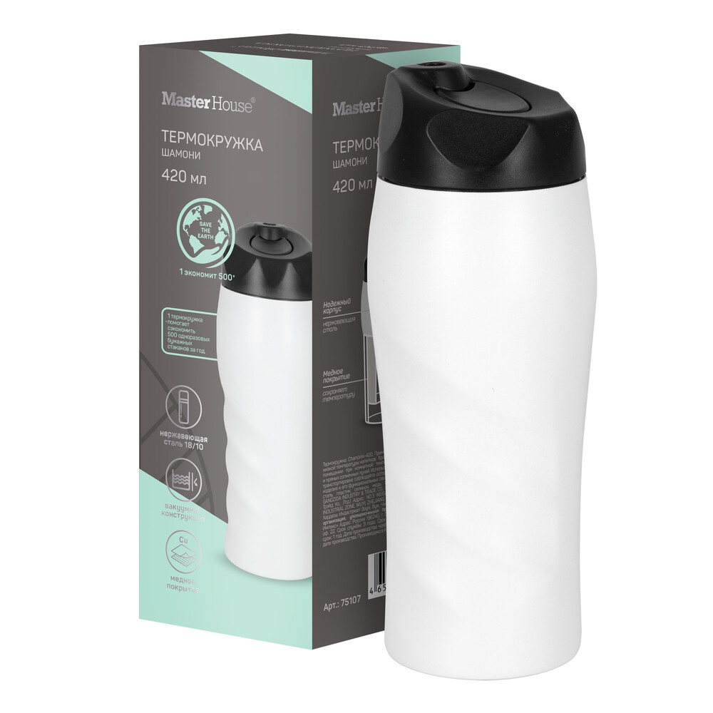 Термокружка из нержавеющей стали. Объем 420 мл. Внутренная и наружная колба из стали AISI 304 (аналог ГОСТ 08Х18Н10).