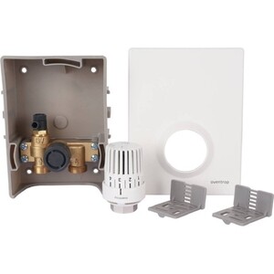 Монтажная коробка с крышкой – 1 шт., вентиль RTLH (резьба вентиля НР 3/4″ евроконус) -1 шт., воздухоотводчик – 1 шт., термостат для регулировки температуры обратного потока – 1 шт.