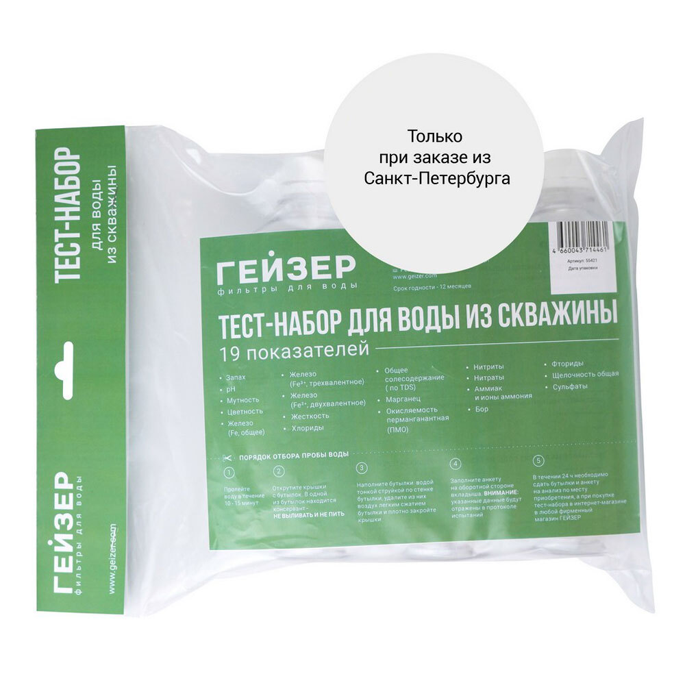 Тест-набор предназначен для отбора воды из скважины глубиной более 25 метров. Комплектуется тремя бутылками и талоном для заполнения. В одной из бутылок находится специальный консервант, увеличивающий время хранения отобранной пробы.