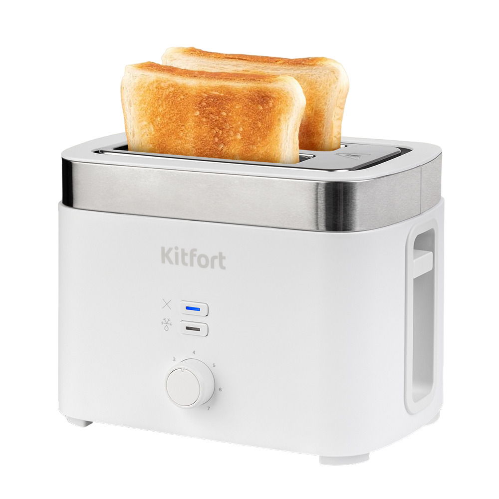 Электрический тостер Kitfort КТ-4025 оснащен поворотным регулятором степени обжаривания и двумя кнопками со световыми индикаторами. Режим разморозки позволяет приготовить тосты из замороженного хлеба. Благодаря широким слотам можно поджаривать толстые куски хлеба, а не только тонкие. Загруженные тосты автоматически центрируются, чтобы обжарка с двух сторон была равномерной независимо от толщины куска. Вы можете приготовить 1 или 2 тоста одновременно. Благодаря 7 степеням поджаривания вы можете приготовить горячие тосты на любой вкус и из любых видов хлеба. Снизу расположен выдвижной поддон для крошек. На дне корпуса тостера имеется отсек для хранения шнура.