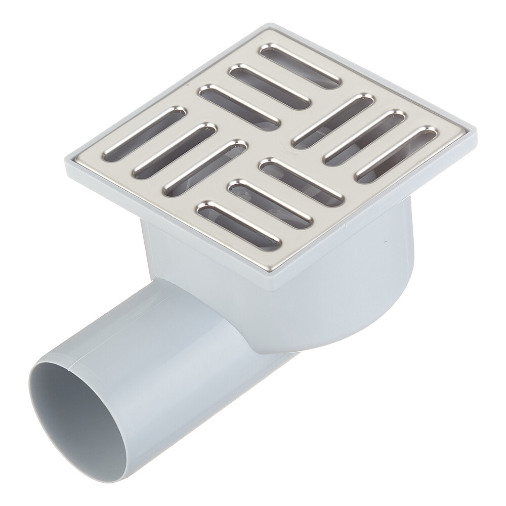 Сливной горизонтальный точечный трап с сухим затвором и решеткой из нержавеющей стали 100×100 мм. Диаметр отвода – 50 мм, трап нерегулируемый с решеткой из нержавеющей стали 10×10 см. Трап с горизонтальным отводом имеет меньшую строительную высоту по сравнению с вертикальным трапом. Применяются, когда есть ограничения по высоте стяжки (канализационная сеть лежит под самой поверхностью). Подходит для редкого использования. Элементарная поплавковая конструкция не позволит проникать запахам из канализации. Корпус выполнен из высококачественного полипропилена. Выдерживает нагрузку до 300 кг.