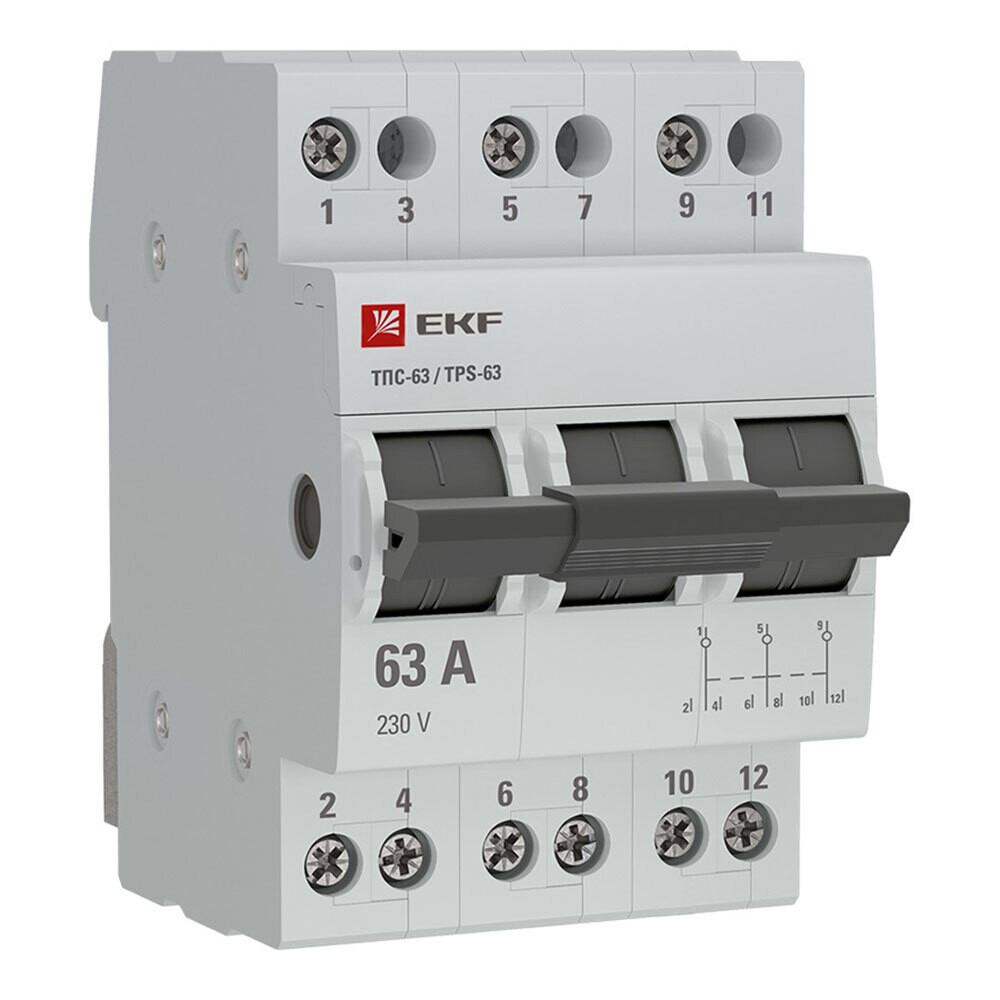 Трехпозиционные переключатели ТПС-63 EKF PROxima являются механическими коммутационными аппаратами и применяются для переключения нагрузки или питающей линии, проведения тока в нормальном режиме и нечастого оперативного включения электрической цепи. Трехпозиционные переключатели соответствуют ГОСТ IEC 60947-3. Обеспечивают переключение нагрузки или питающей линии, проведение тока в нормальном режиме, нечастое оперативное включение электрической цепи, оперативное переключение с основной сети на бытовой электрогенератор в системах ввода резерва и управления реверсированием маломощных электродвигателей.