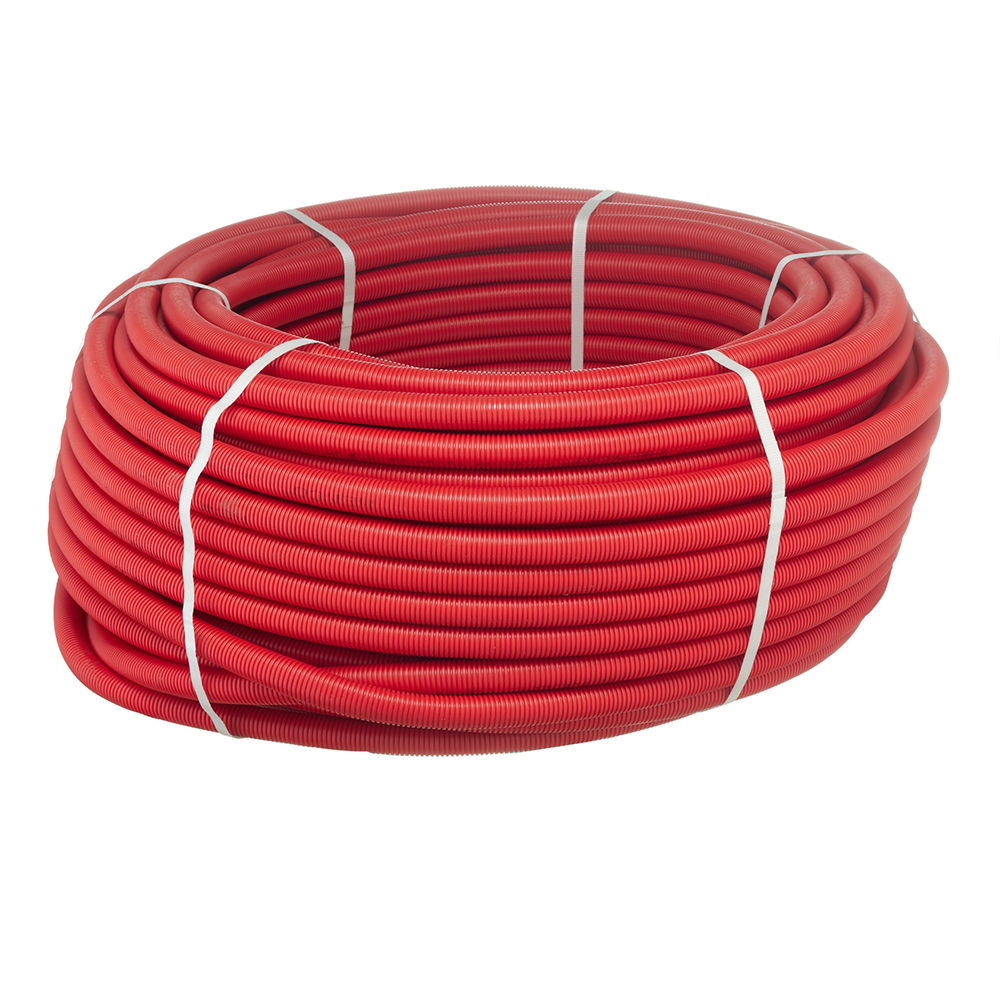 Гофра, в которой поставляется труба, защитит ее от механических повреждений, сэкономит время монтажа, позволит различить подающую и обратную линии по цвету и частично выполнит функцию теплоизоляции. Гофра выполнена из ПЭ высокой плотности и отличается высокой прочностью