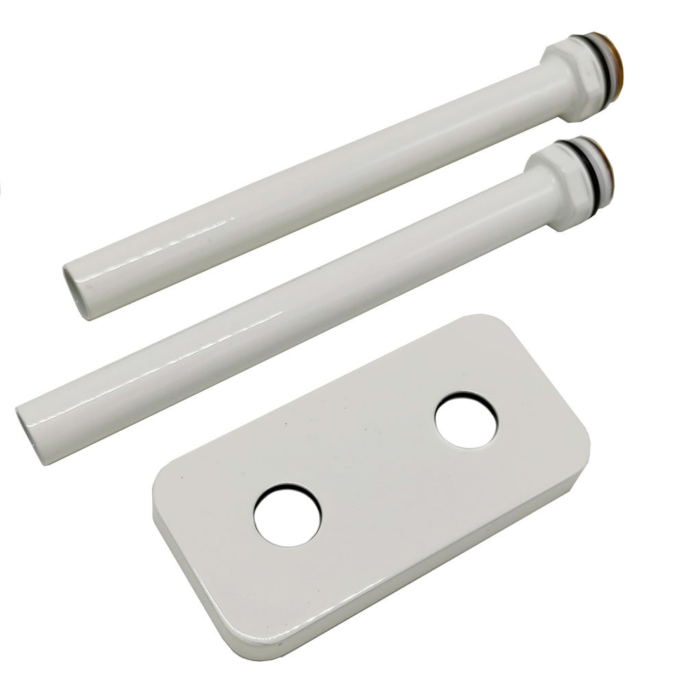 Маскировочный комплект SR Rubinetterie для одно/двухтрубных систем с прямоугольным глубоким отражателем, межосевое расстояние 50 мм и двумя декоративными трубками.