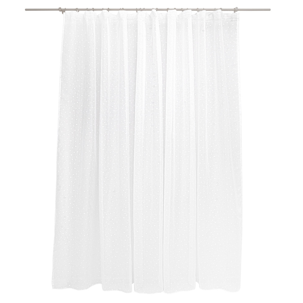 Тюль Спот – это уникальный представитель текстильной моды, который привносит в интерьеры особый шарм и романтику. Основным декоративным элементом этого тюля являются изящные горошки, вытканные по всей поверхности материала.