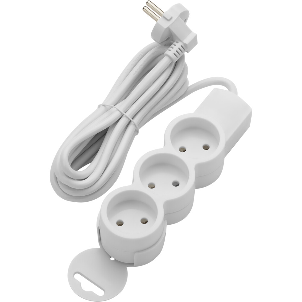 Бытовой удлинитель без заземляющего контакта на 3 розетки предназначен для подключения различных электроприборов в местах, расположенных на значительном расстоянии от стационарных розеток. Удлинитель изготовлен из высококачественных материалов по европейским стандартам. В комплект входит удобный пластиковый бокс для крепления удлинителя к стене. Предназначен для использования в быту, офисе, загородном доме, при благоустройстве помещений, производстве строительно-монтажных работ, для подключения электрических приборов различного назначения (инструменты, бытовая техника, механизмы, и т.п.) к электрической сети переменного тока напряжением до 230 В номинальной частоты 50 Гц общей мощностью не более 2200 Вт.