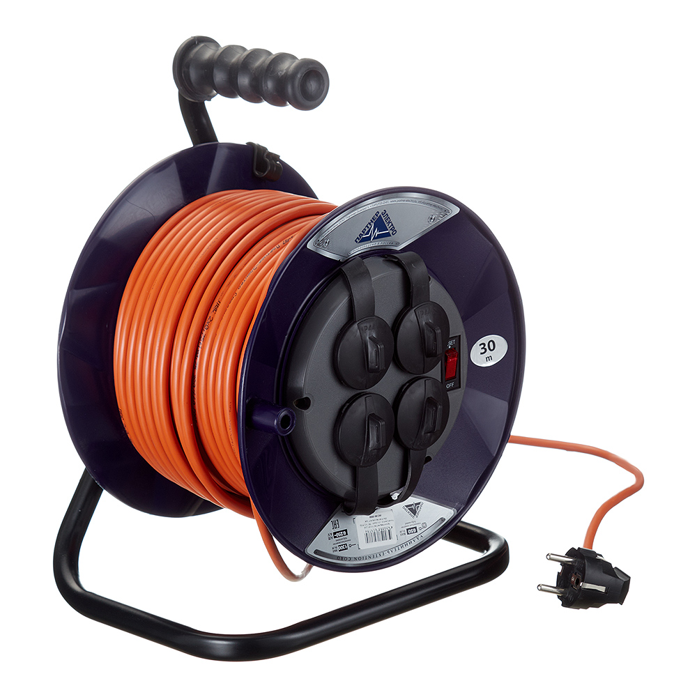 Удлинитель Партнер Электро с заземлением 30 м на катушке 1,3 кВт 4 розетки ПВС 3х0,75 кв.мм IP44