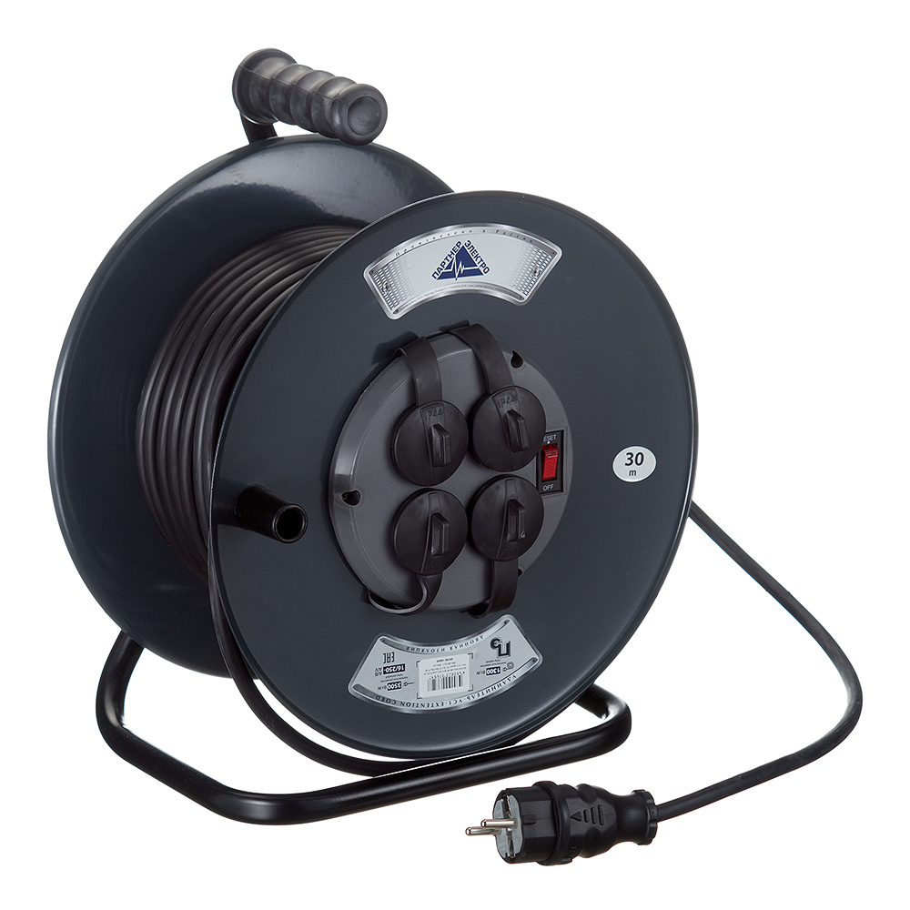 Удлинитель Партнер Электро с заземлением 30 м на катушке 3,5 кВт 4 розетки КГт 3х1,5 кв.мм IP44